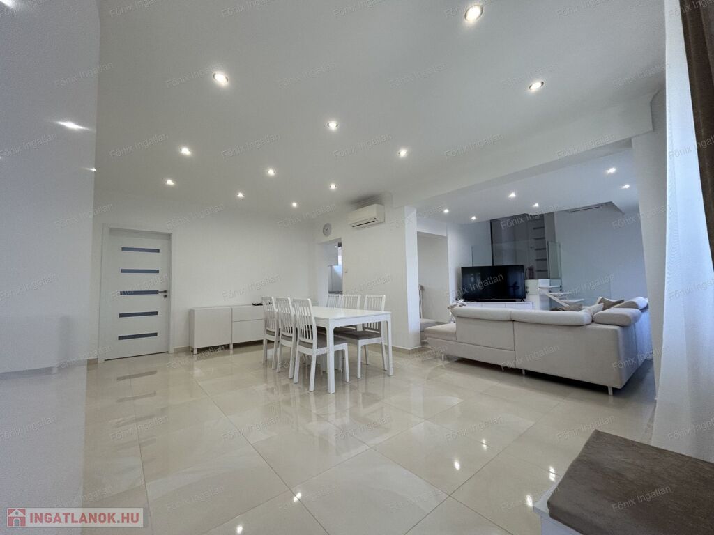Vácrátót csendes részén, 750 m²-es telken kínálunk eladásra egy 154 m²-es, teljes körűen felújított és szigetelt, amerikai konyhás-nappalis, 4+1 szobás önálló családi házat, saját fűthető medencével és dupla garázzsal.