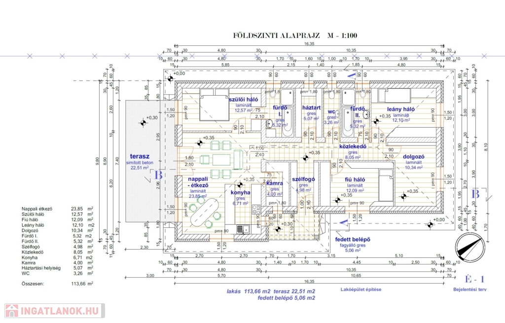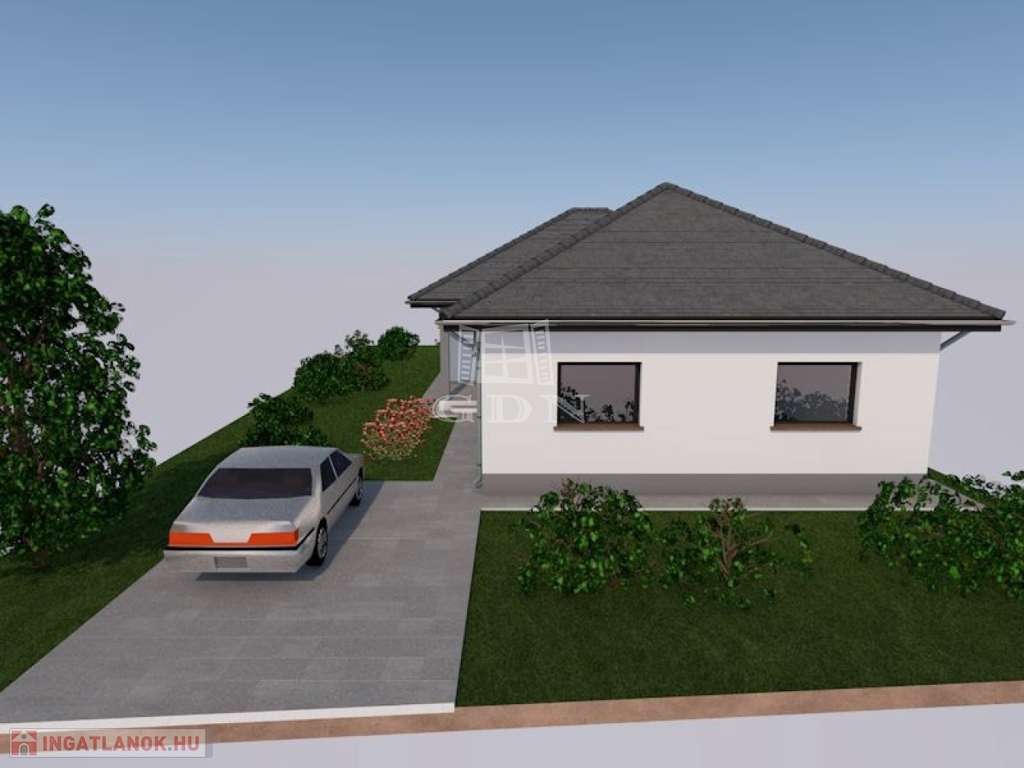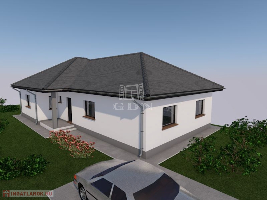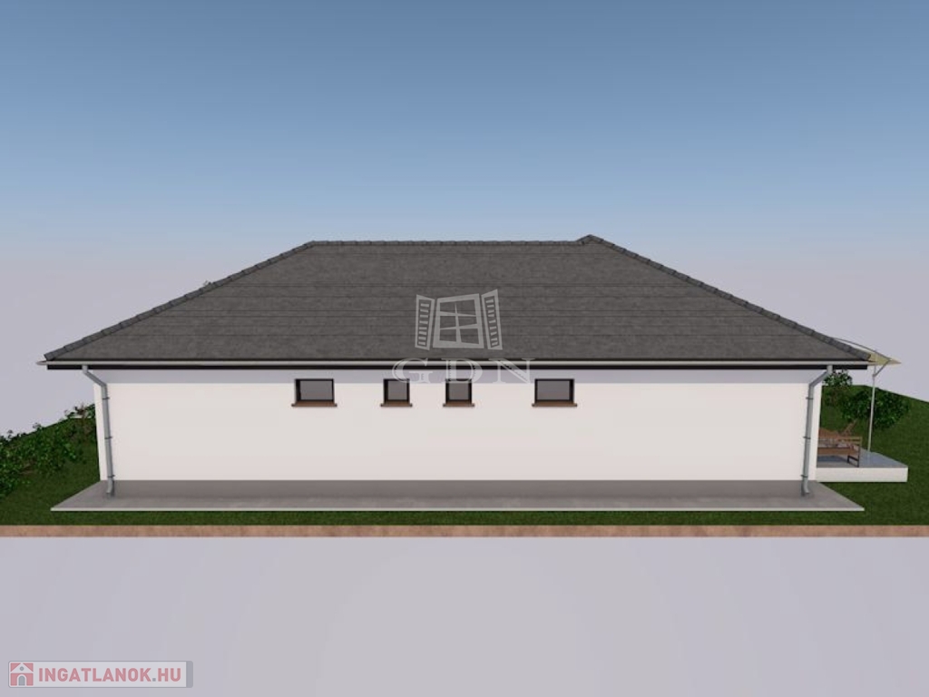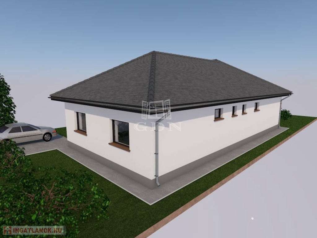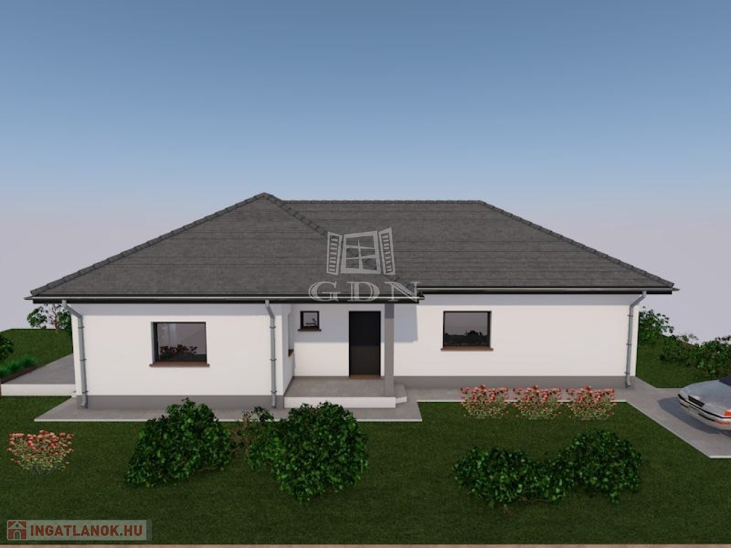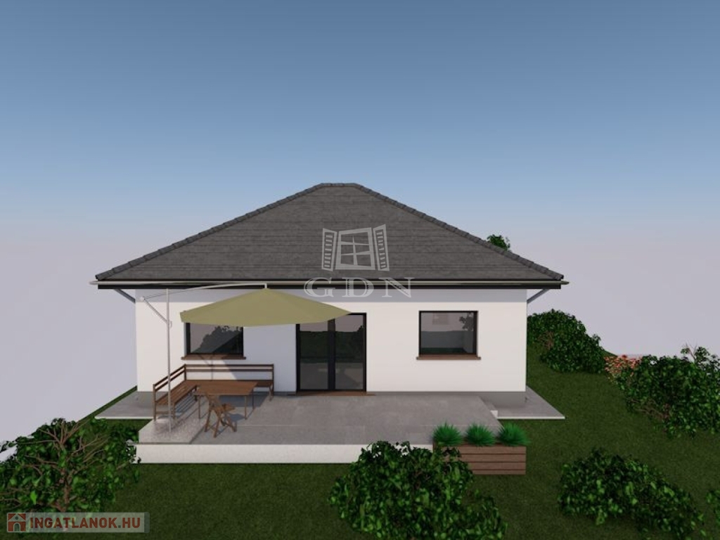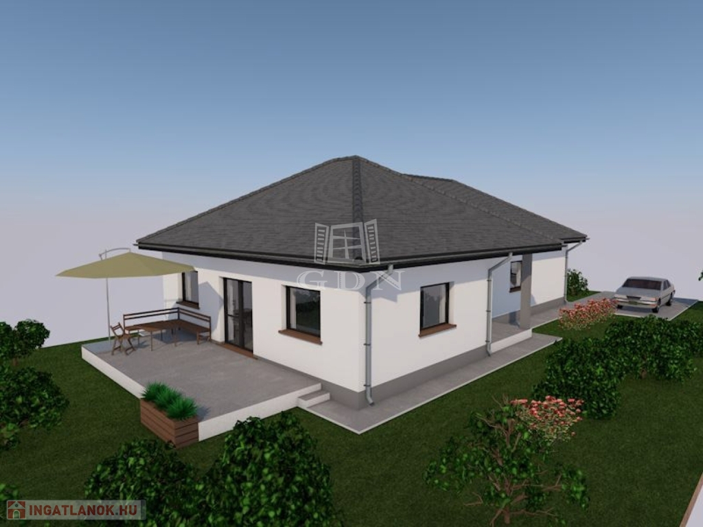 Vácszentlászlón a Nap utca 1. szám alatt, 700 m²-es telken, eladó egy 30-as Porotherm P30 N+F falazóelemből épülő, új építésű, nettó 113,66 m²-es, közel nulla energia igényű, betoncseréppel fedett kulcsrakész 4 hálószobás családi ház.