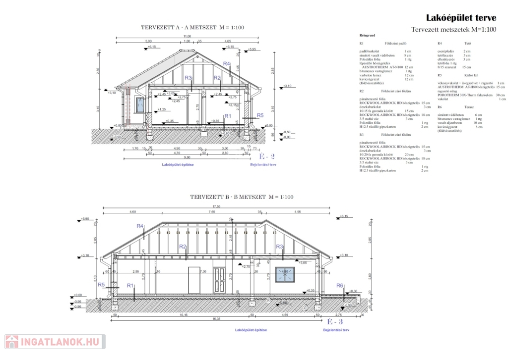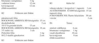 A padló 12 cm-es Austrotherm ATN-100-as lépésálló szigeteléssel, a homlokzatok 15 cm Austrotherm AT-H80 dryvit szigeteléssel, a födém 33 cm Rockwool Airrock HD ádványgyapot szigeteléssel lesz ellátva.