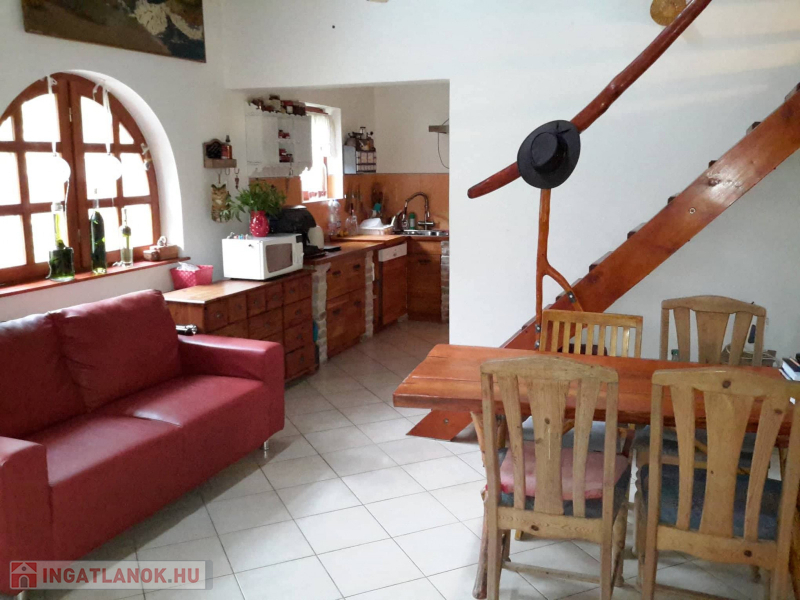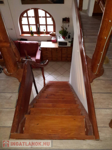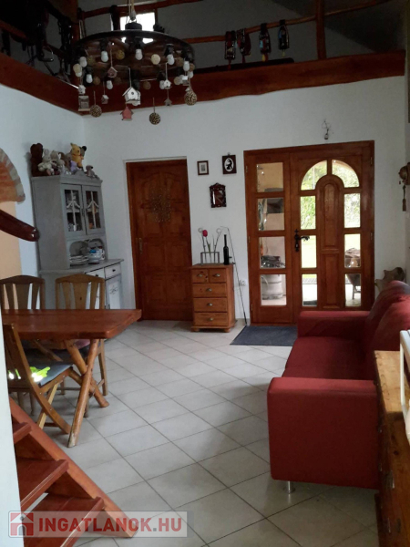 -Lakóház 107 nm-es galériázott. Alsó szinten kialakításra került egy étkező-konyha-nappali ,egy hálószoba ,kettő fürdőszoba,és egy kamra . A tetőteret (Galériát) egyedi kialakítású lépcsőn közelíthetjük meg. A felső szintre érve egy nagy nappali ,egy fürdőszoba és egy gardrób szoba került beépítésre .(igény szerint a nappaliból kialakítható még egy szoba). Az ingatlan fűtését egy vízteres kandalló biztosítja .Földszinten a járólappal burkolt helységekben padlófűtés,még a többi helység radiátoros fűtéssel lett ellátva.