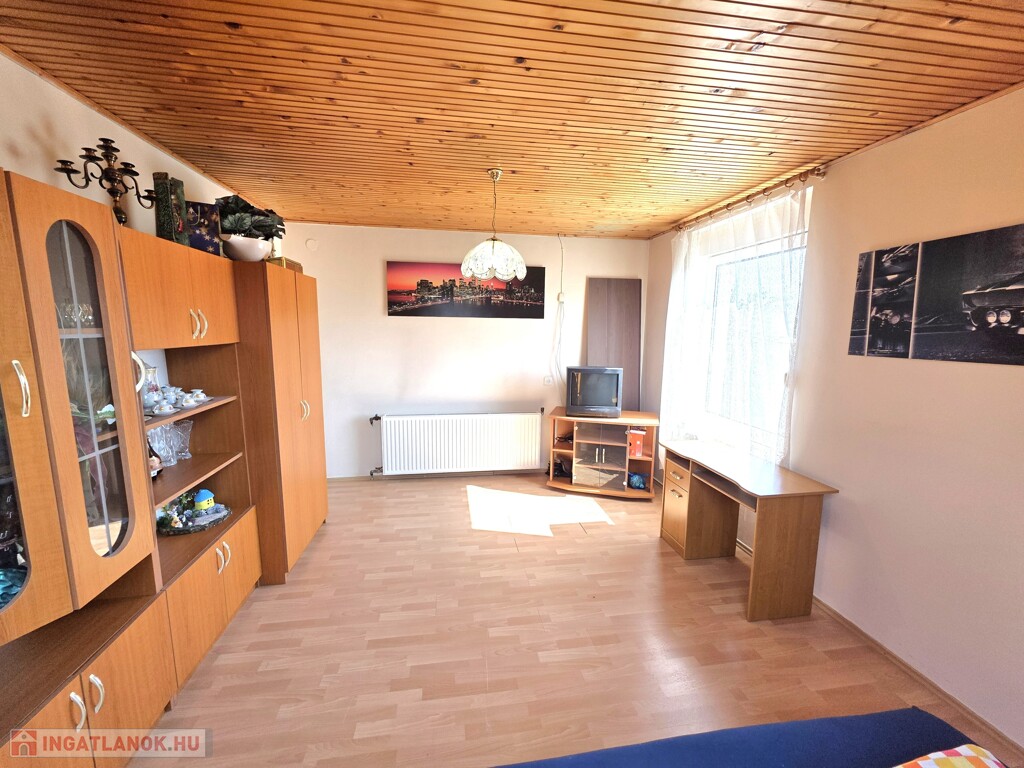 Az ingatlant 1995-ben építették 38-as porotherm téglából. A ház külső hőszigetelő vakolatot kapott. A földszinten padlőfűtés, az emeleten radiátorok vannak. A ház fűtését gázkazán biztosítja (3 éves). A nyílászárók körszerű műanyag ablakok, a tetőtérben 3 rétegű ablakok. A nappaliban igazán hangulatos kandalló kapott helyet. A nyári melegben két klíma biztosítja a kellemes hőfokot. A ház elrendezése alkalmas üzleti rész kialakítására is. A földszinten nagyszoba, fürdőszoba, konyha étkező és hatalmas nappali található. A felső szinten pedig négy folyosóról nyíló szoba és egy fürdőszoba. A pinceszint kiválóan alkamas bolt kialakítására, vagy más üzleti célú tevékenységnek.