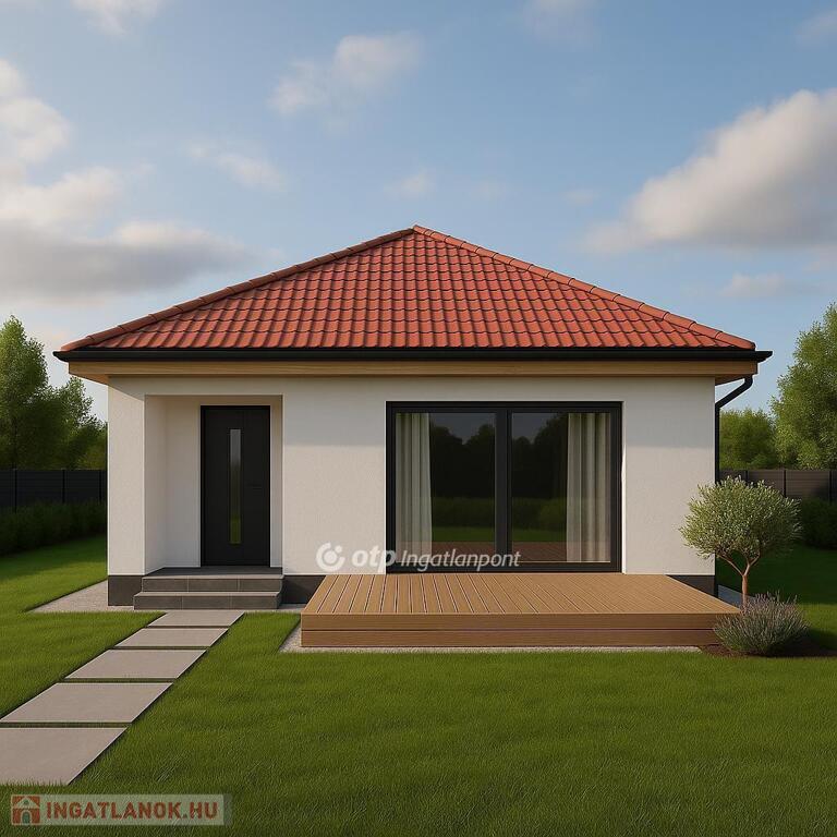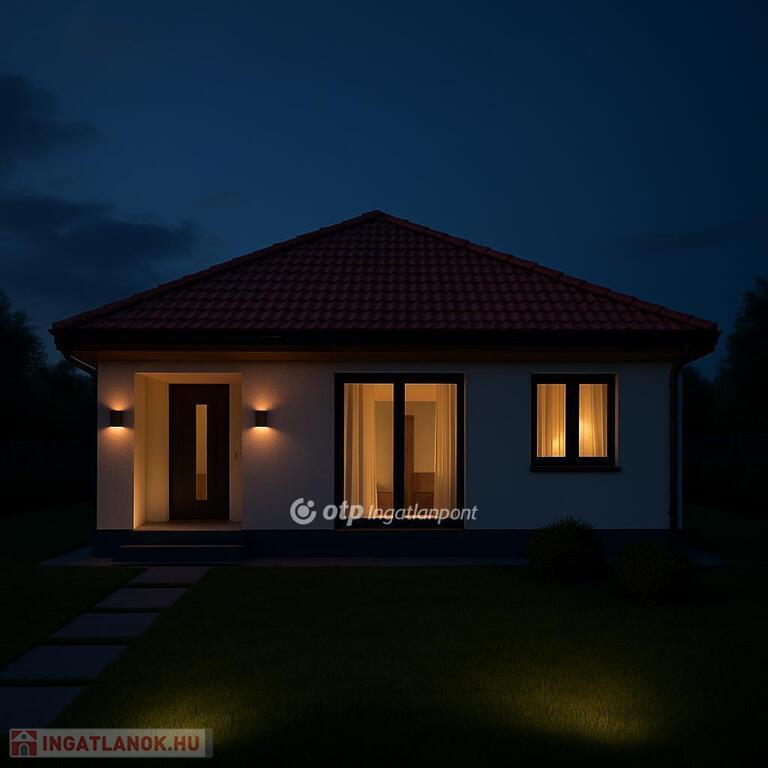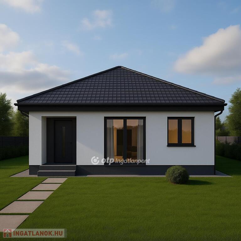 A település szélén, forgalomtól mentes, békés környezetben, 1500 nm-es telken épül ez a modern, mégis otthonos családi ház, amely minden igényt kielégít. A ház 100 nm hasznos alapterületű, ahol a praktikum és a kényelem találkozik a korszerű technológiával.