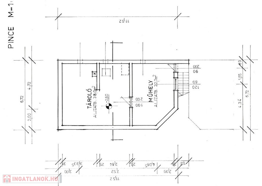 - az egész épület alatt, egyterű pince található (70nm)
