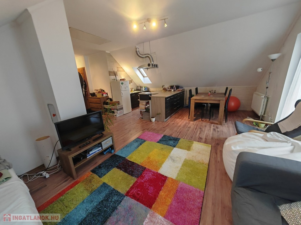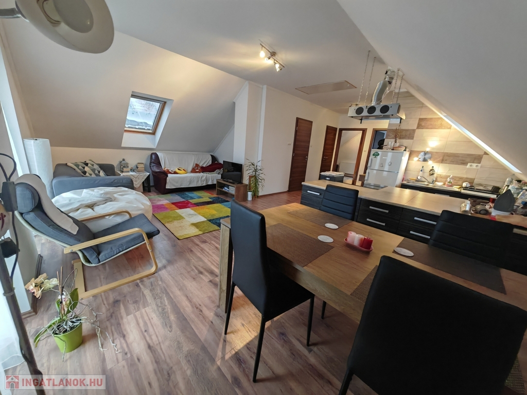Tetőtér: amerikai konyhás nappali erkélykapcsolattal, 2 szoba, fürdő, külön WC.
