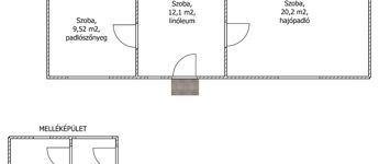 A lakóházban egy konyha, kamra, és két szoba található. A ház mellett, 2m-re elhelyezkedő melléképület rendelkezik víz és szennyvíz bekötéssel, ebben van kialakítva a fürdőszoba és egy mosókonyha. A lakóházba jelenleg csak az elektromos hálózat van bekötve. A fűtés helyiségenként egyedi kályhás, de a gázcsonk a telek határánál van, a vezetékes gáz is beköthető az ingatlanba. Az utcában működik nagy sebességű internet és kábeltévé hálózat, amire biztosított az ingatlan csatlakozási lehetősége. A padlás betonozott, a tető jó állapotú.