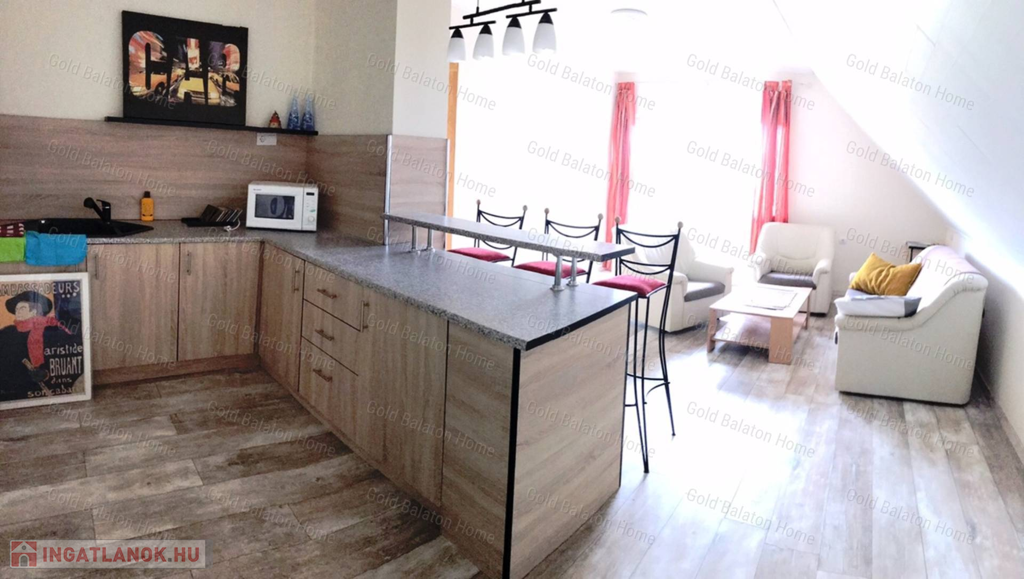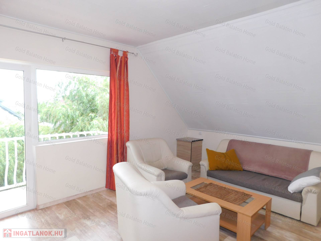 - tetőtér: lépcsőház, társalgó, nappali – konyha, balatoni panorámás erkély, 2 hálószoba, fürdőszoba káddal + fürdőszoba zuhanyzóval +WC