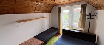 • Nappali + 3 hálószoba + lépcsőház + kádas fürdőszoba (WC-vel) + WC + konyha + kamra
