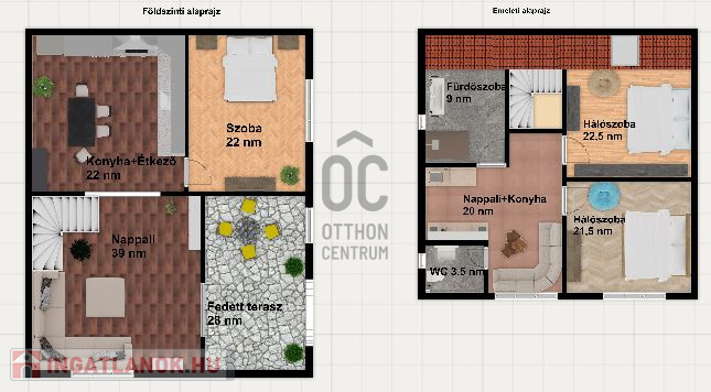 I. INGATLAN: 2 generációs újabb építésű, tégla, 190 négyzetméteres, két szintes családi ház, mely magában foglal 3 hatalmas hálószobát, 2 nappali-konyhát, és tágas tereket. Az otthon melegéről a gáz- és vegyestüzelésű kazán gondoskodik, így a modern kényelem és a hagyományos meleg találkozik. A földszinten találunk egy hatalmas, világos, szép burkolatokkal ellátott nappali-konyha-étkezőt, és egy nagy méretű hálószobát. A nappaliból masszív kényelmes lépcsőn jutunk fel az emeletre, ahol a világos, tágas nappali-konyha fogad minket. Innen nyílik két 20 nm-nél nagyobb hálószoba, a fürdőszoba, és külön a WC.