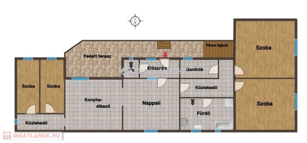 A házban megtalálható: nappali és 4 különálló hálószoba, gardrób, (ablakos, így akár szobának is használható) tágas fürdőszoba, wc-vel, vendég wc. felújított, modern konyha. Extrák, amelyek még kényelmesebbé teszik az otthont:17 m²-es fedett terasz kellemes pihenőhely családi és baráti összejövetelekhez,16 m²-es száraz pince, praktikus tárolási lehetőséggel,24 m²-es könnyűszerkezetes garázs, térkövezett bejárattal.