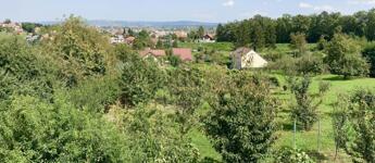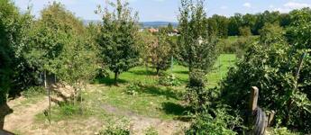 A bekerített telek 1320 négyzetméteres, gondozott, enyhe lejtésű, 25 gyümölcsfával, veteményessel, kis tárolóval rendelkezik.