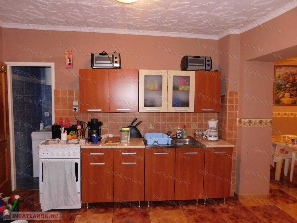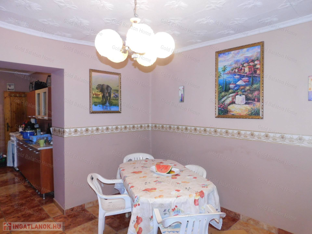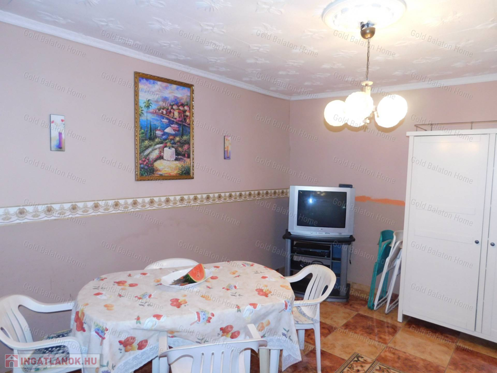 Családi ház nappalival, étkezővel, 2 hálószobával, melléképületekkel, pincével, természetre néző udvarral a Kis-Balatontól 4000 méterre eladó.