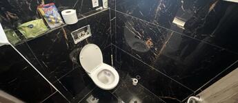 A tégla falazaton belül igényes, modern belső tér fogad minket.