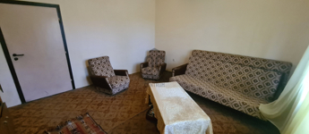 A ház elosztása: két kényelmes szoba, közlekedő, kamra, fürdőszoba-WC egyben, konyha, étkező, és egy szélfogó rész.