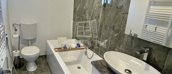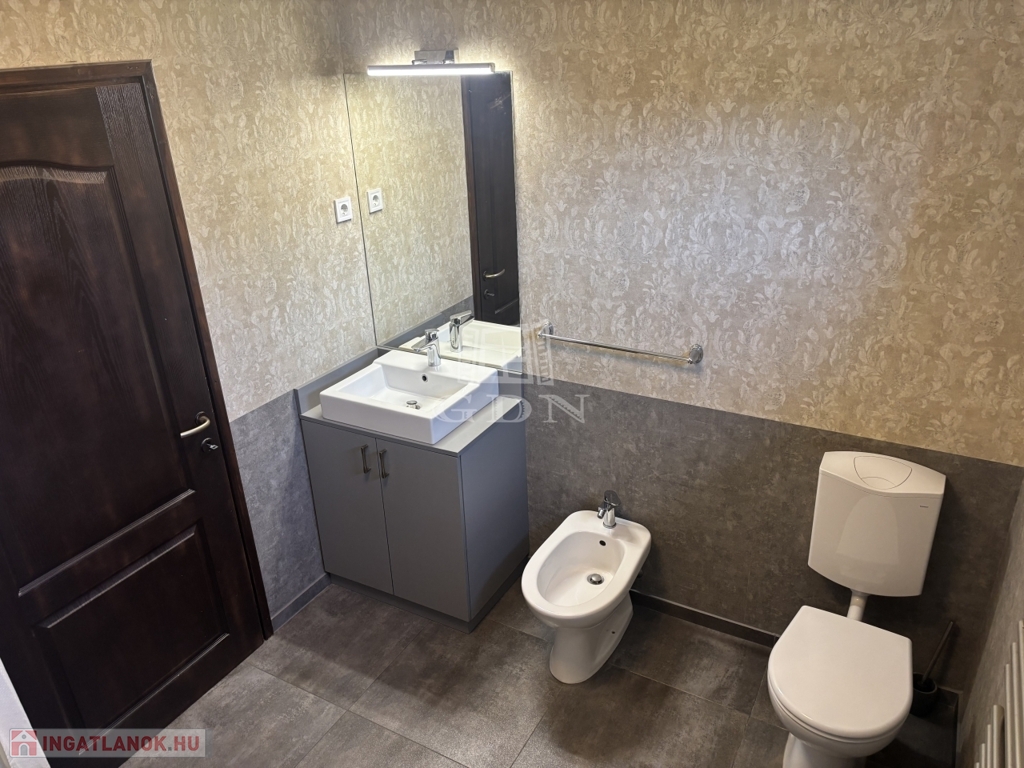 hálószoba, egy tágas közlekedő, mosó és háztartási helyiség, valamint egy kádas fürdőszoba (wc-bidet)