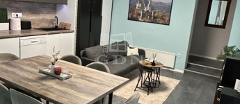 lakórész 75 nm + 25 nm déli tájolású, fedett terasz. Nappali és konyha közvetlen teraszkapcsolattal, két