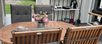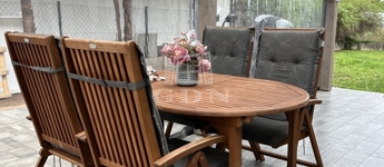 számára is kényelmesen megoldott a ház melletti, térkövezett és védett területen, amely egy kis, füves