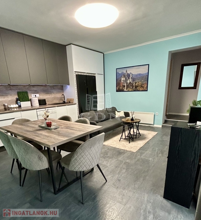 helyiségekből áll. Az egyik hálóban és a tágas közlekedőben beépített bútorok, valamint egy hatalmas