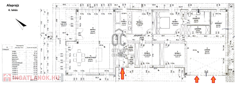 - 4 db hálószobával (13/15 nm-esek) beépített szekrénnyel
