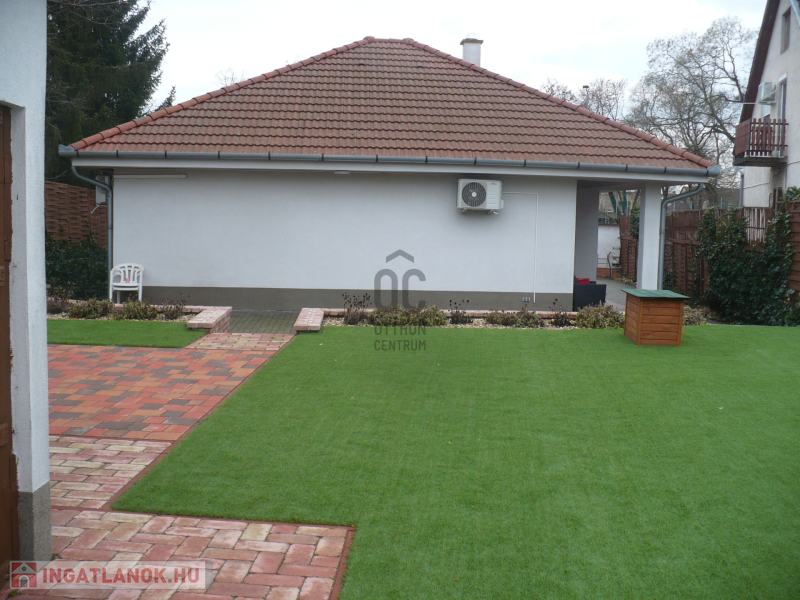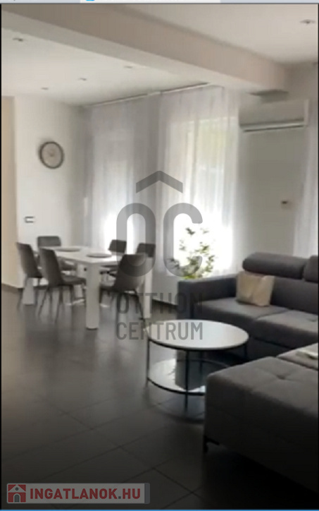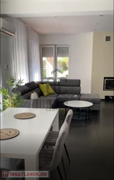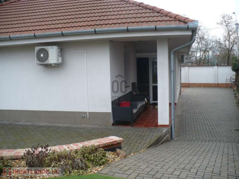 bútorozott, gépesített 93 nm-es nívós családi ház garázzsal, parkosított, rendezett kerttel.
