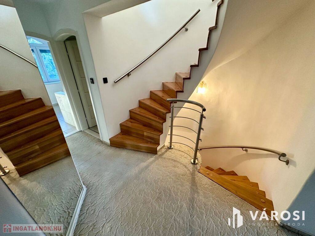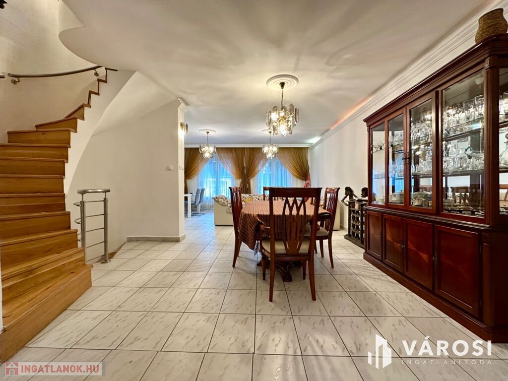 Az ingatlanban amerikai konyhás nappali, 3 külön nyíló hálószoba, előszoba, 3 fürdőszoba, terasz, dupla garázs és több kiszolgáló helyiség található.