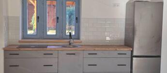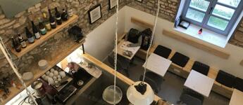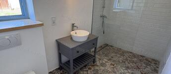 45 m²-es vendégház: A szintén frissen felújított, kétszintes vendégház ideális bisztró vagy más vállalkozás üzemeltetésére. Az elmúlt két évben sikeresen működött bisztróként, falusi pub-ként.