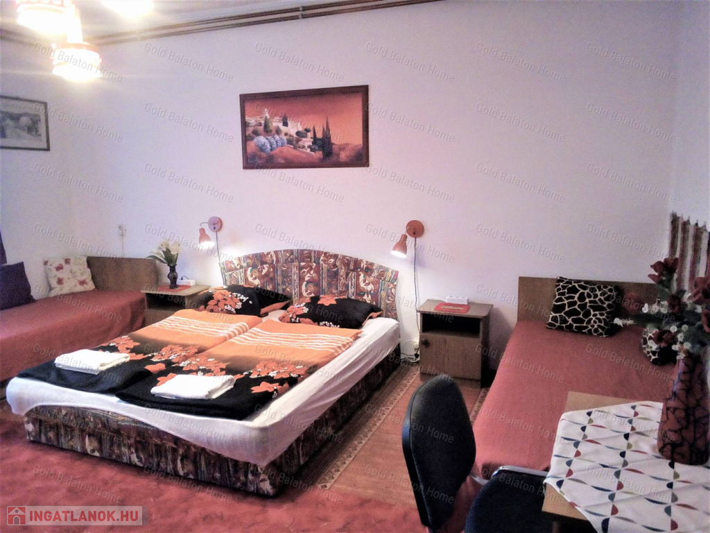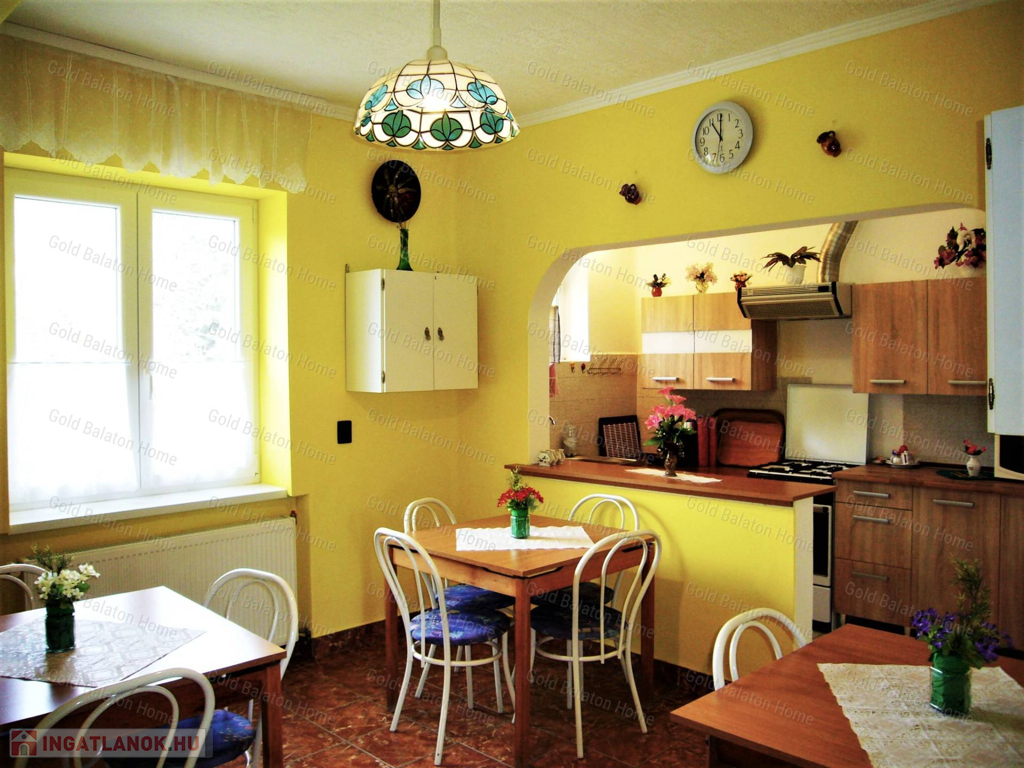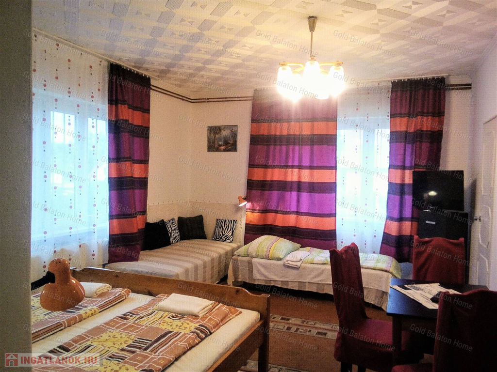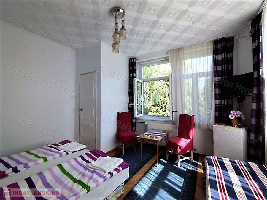 Badacsony központjában lévő impozáns, emeletes, felújított épület, balatoni és badacsonyi panorámával, 150 m-re a strandtól, valamint a hajókikötőtől. Az ingatlanban összesen 7 kisebb-nagyobb fürdőszobás szoba került kialakításra, szintenként közös konyha-étkezővel, valamint egy privát használatú utcafronti apartmanlakás (szoba, konyha-étkező, fürdő). Szeparált, külső feljáraton megközelíthető emelet. A fűtéssel rendelkező ingatlan, akár egész évben, gazdaságosan üzemeltethető.