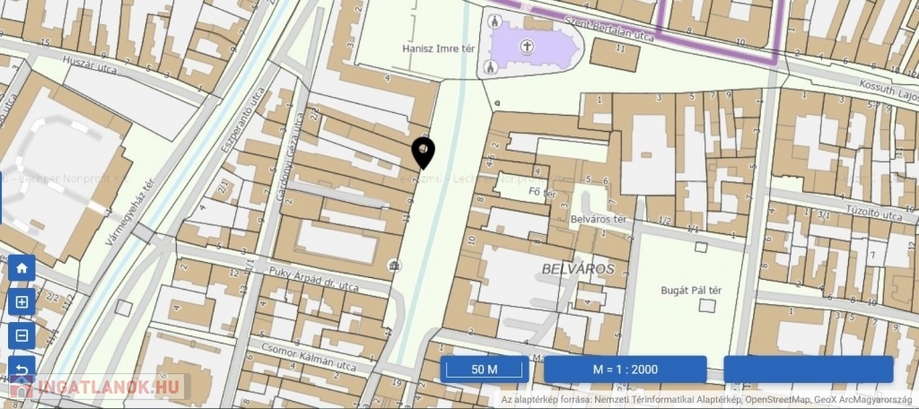 Elhelyezkedése okán sokoldalúan hasznosítható.Az épület L alakú, keleti kilátással a Főtérre, tetőtér beépíthető.