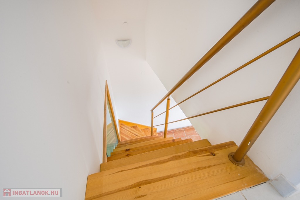Alsóörsön, a Balatontól mindössze 5 perc sétára eladó egy három szintes (garázs + 2 emelet), jó állapotú szélső sorházi lakás.