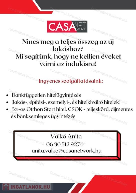 Amennyiben a CasaNetWork Balatonalmádi Ingatlaniroda által hirdetett balatonalmádi lakás, vagy bármely a kínálatunkban található ingatlan felkeltette érdeklődését, kérem  hívjon a megadott telefonszámon!