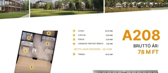 Az első emeleten további 21 lakás érhető el, 47–75 m² közötti méretben.