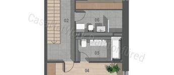- Kétlakásos épület emeleti, belső kétszintes lakása.