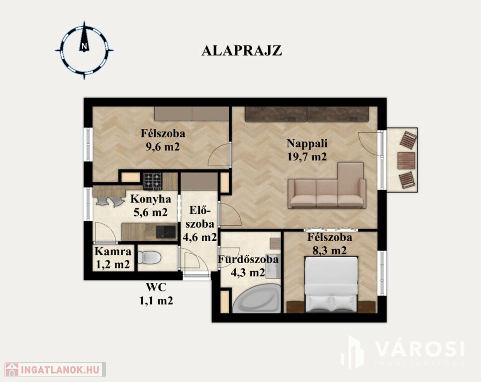 - Lakótér: 54 m²