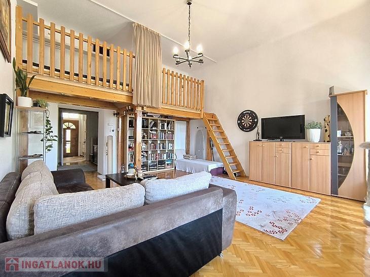 A lakás elrendezése praktikus: a 31 m²-es, galériás nappalihoz erkély kapcsolódik, a tágas hálószobák és a konyha–étkező rész jól elkülönülnek. A keleti fekvésnek és a nagy belmagasságnak köszönhetően a terek világosak és szellősek.