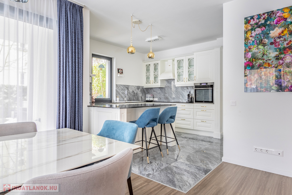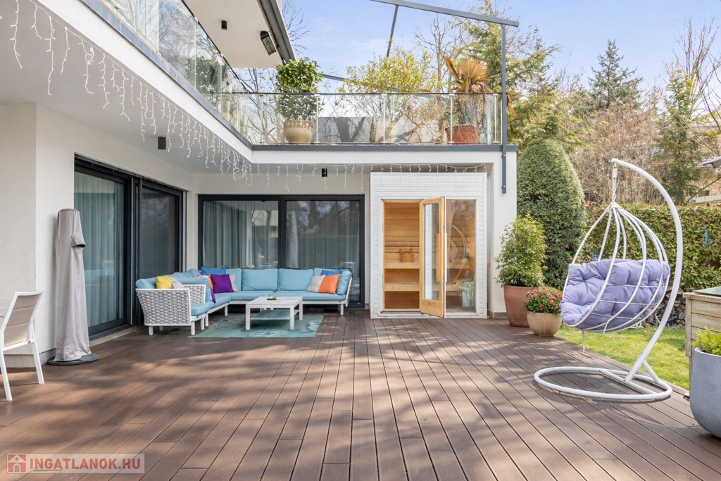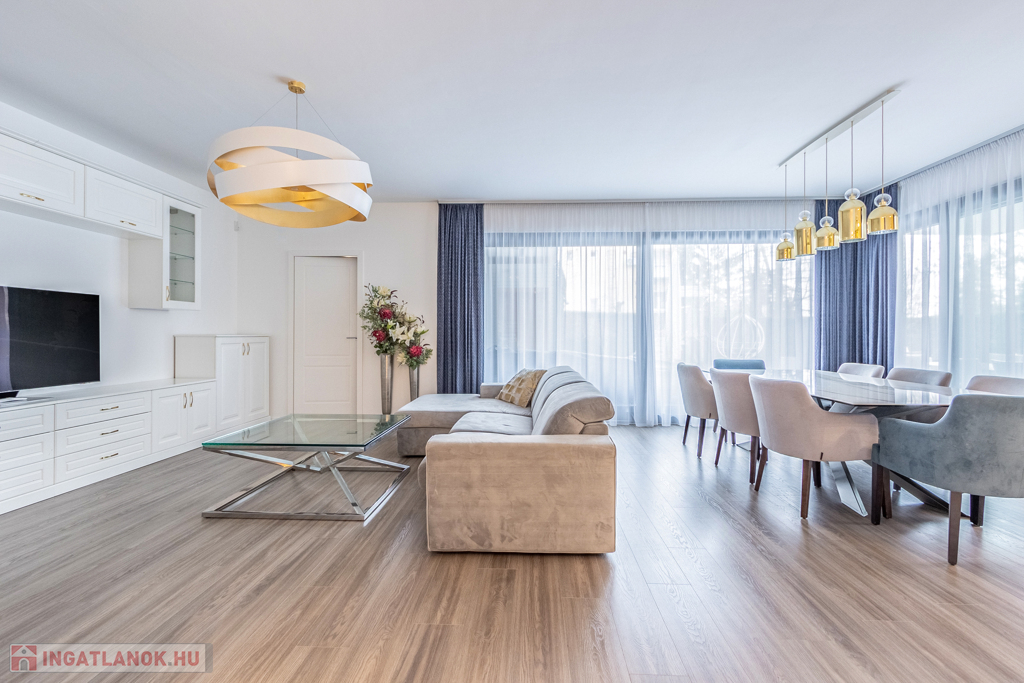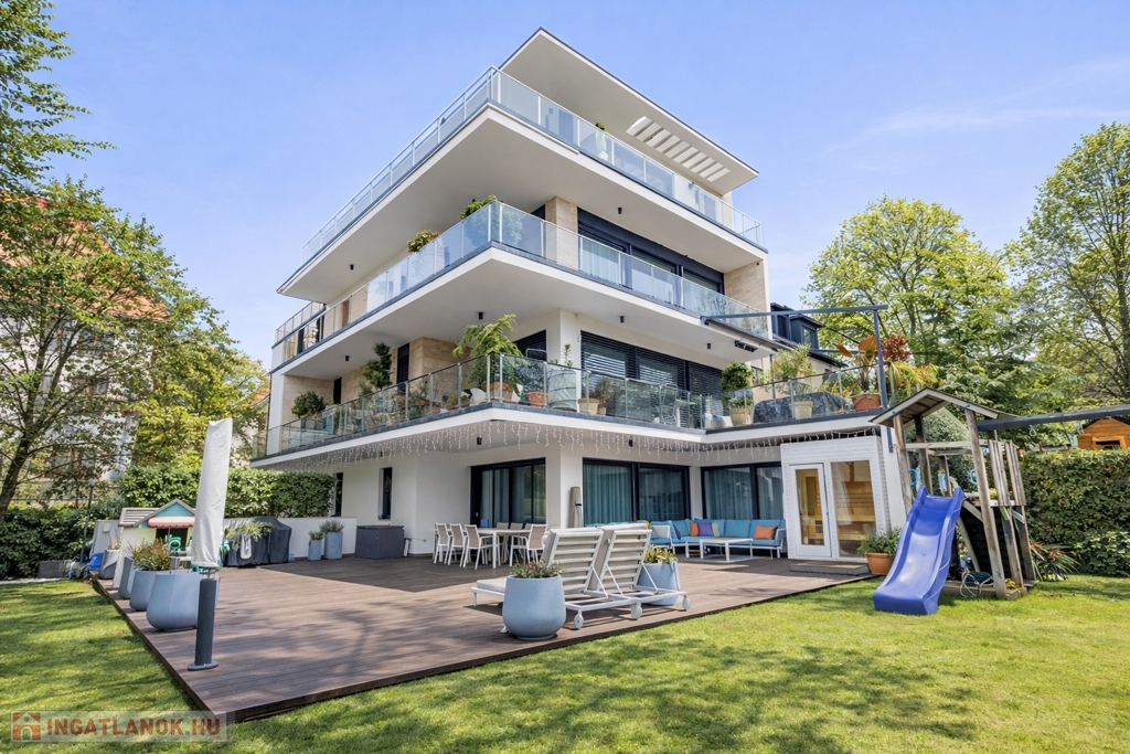 RITKASÁG AZ INGATLANPIACON – 2017-ben épült, újszerű állapotú, 163 nm nettó alapterületű, nappali + 4 szobás, exkluzív kertkapcsolatos lakás, hatalmas terasszal, dupla garázzsal és tárolóval eladó!