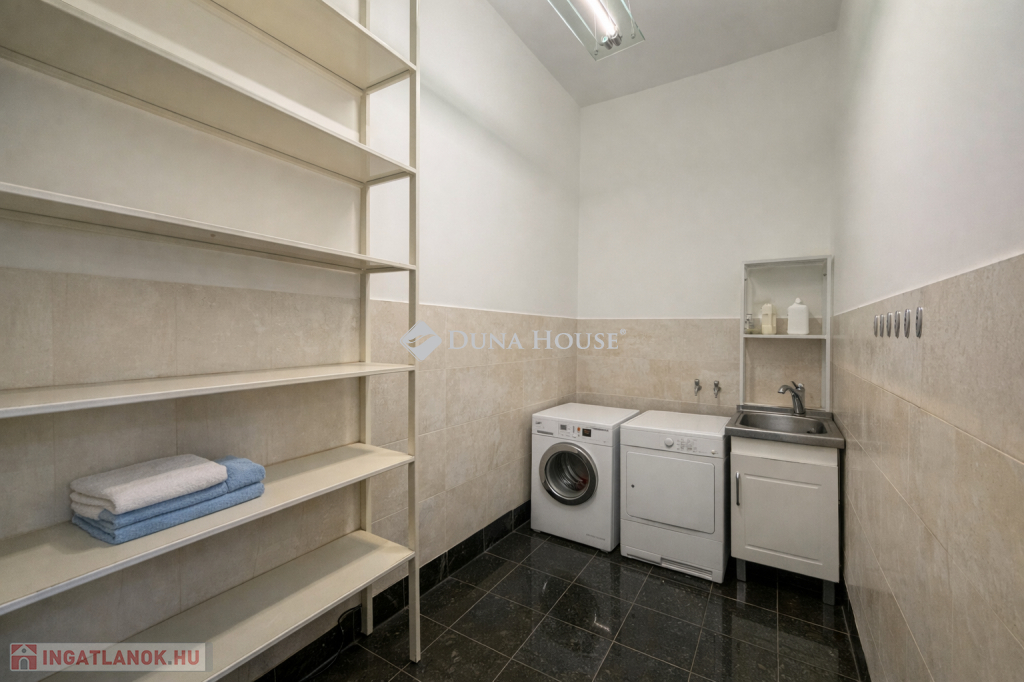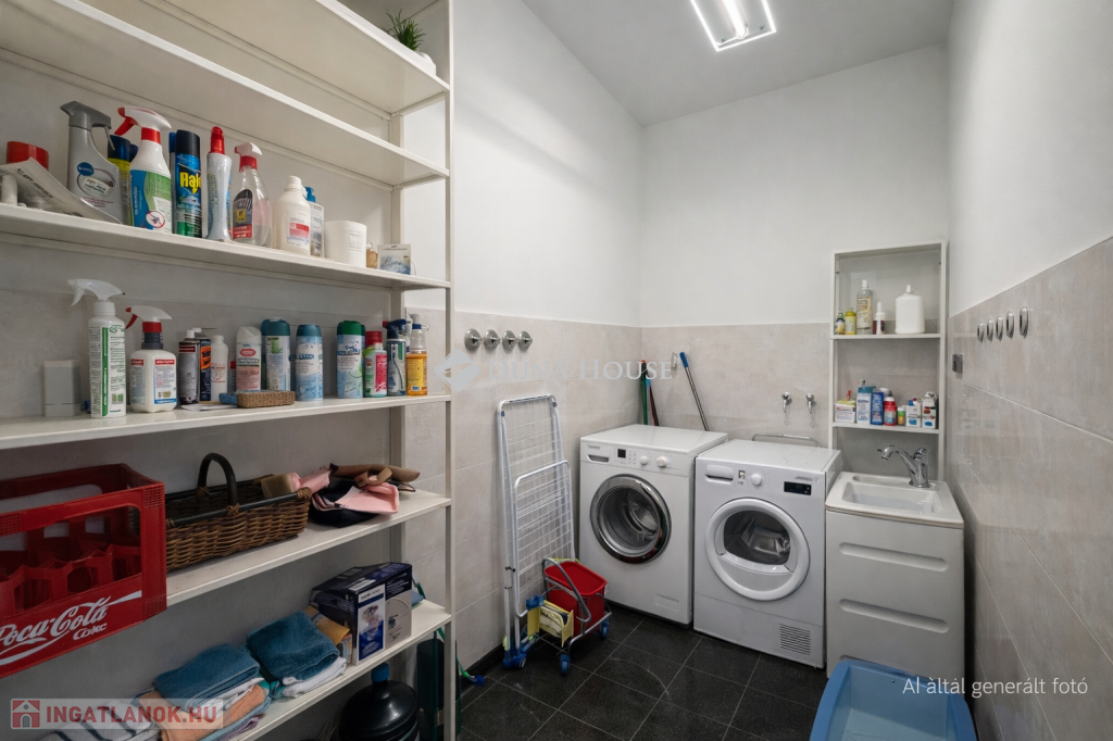 nagyméretű tárolószoba, amelyhez mosókonyha is kapcsolódik