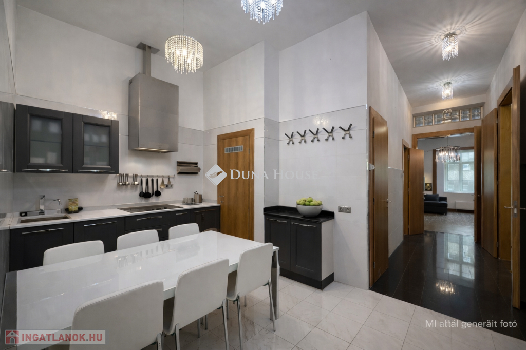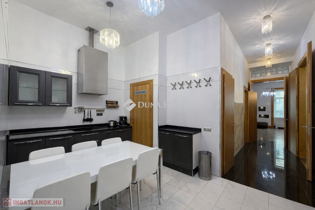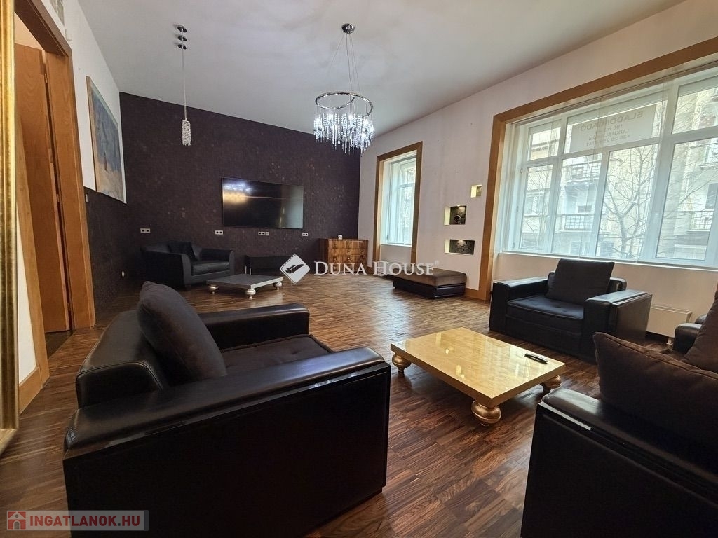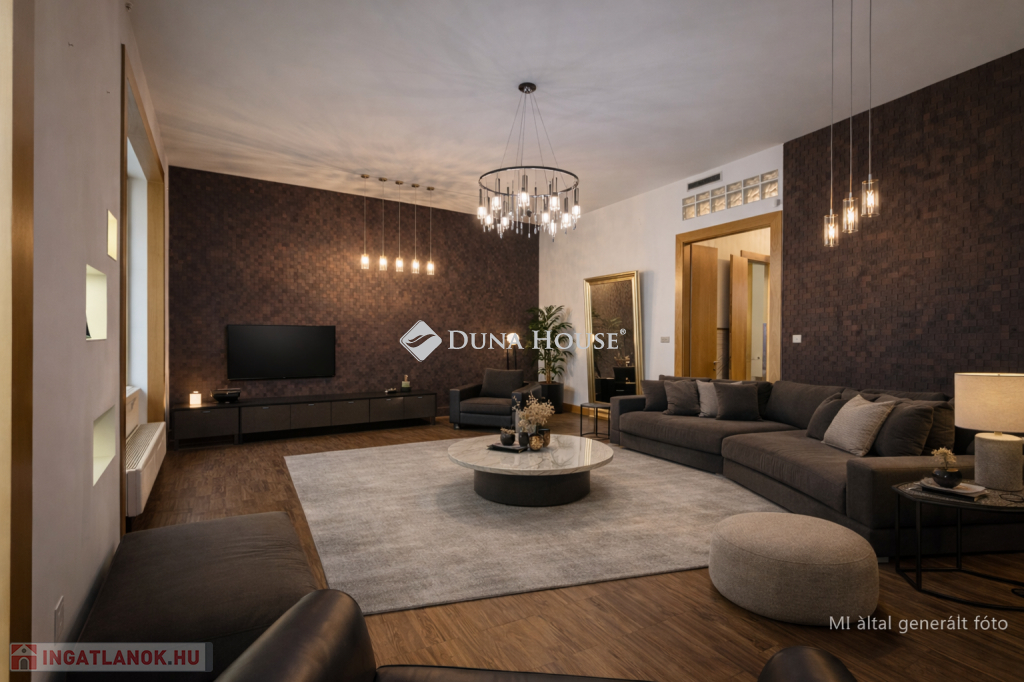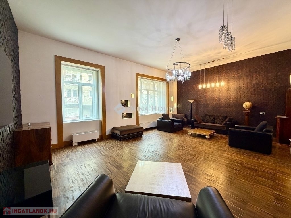 A lakás központi tere egy nagyméretű, tágas nappali, amely világos és reprezentatív életteret biztosít.
