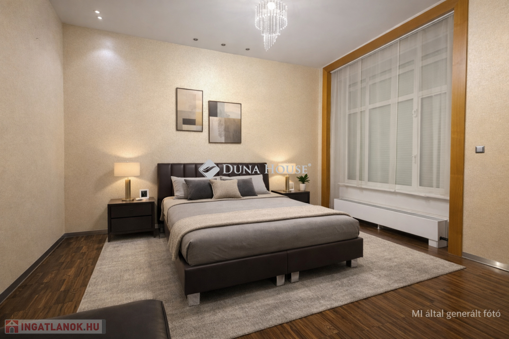 Az udvarra néző hálószoba külön gardróbbal rendelkezik, így csendes és jól használható privát tér.