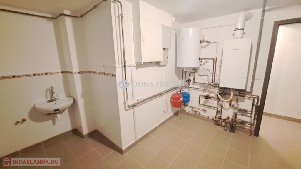 Az alagsorban ablakos és bevilágított mosókonyha található, valamint innen közelíthető meg egy közös tároló és a teremgarázs is.