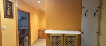 A lakás minden részében fűrészporos tapéta található, a két szoba szőnyegpadlós, a terek kialakítása egyszerűen személyre szabható.