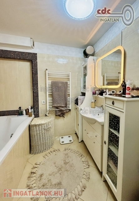 A lakás elosztása ideális: tágas nappali–konyha–étkező egyben, két külön nyíló hálószoba, kádas fürdőszoba és külön WC, nagy hall, előszoba és 4 m²-es saját tároló. Az ingatlan keleti és nyugati tájolású, nagy ablakai a gondozott kertre néznek, szép burkolatokkal és rendkívül jó lakóközösséggel várja új tulajdonosát. Csendes, nyugodt környék, ingyenes utcai parkolás, a közelben óvoda, iskola, bolt, pékség – minden karnyújtásnyira. Egy igazi ritkaság Rómaifürdő szívében – a természet közelsége, városi kényelem és stílusos otthon egy helyen.