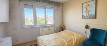 Újpest-központ közelében, csendes, parkos környezetben, liftes társasház III. emeletén kínálunk megvételre egy 60 nm-es, 2+1 félszoba + hallos elosztású, kétfekvéses, erkélyes panellakást, beköltözhető állapotban.