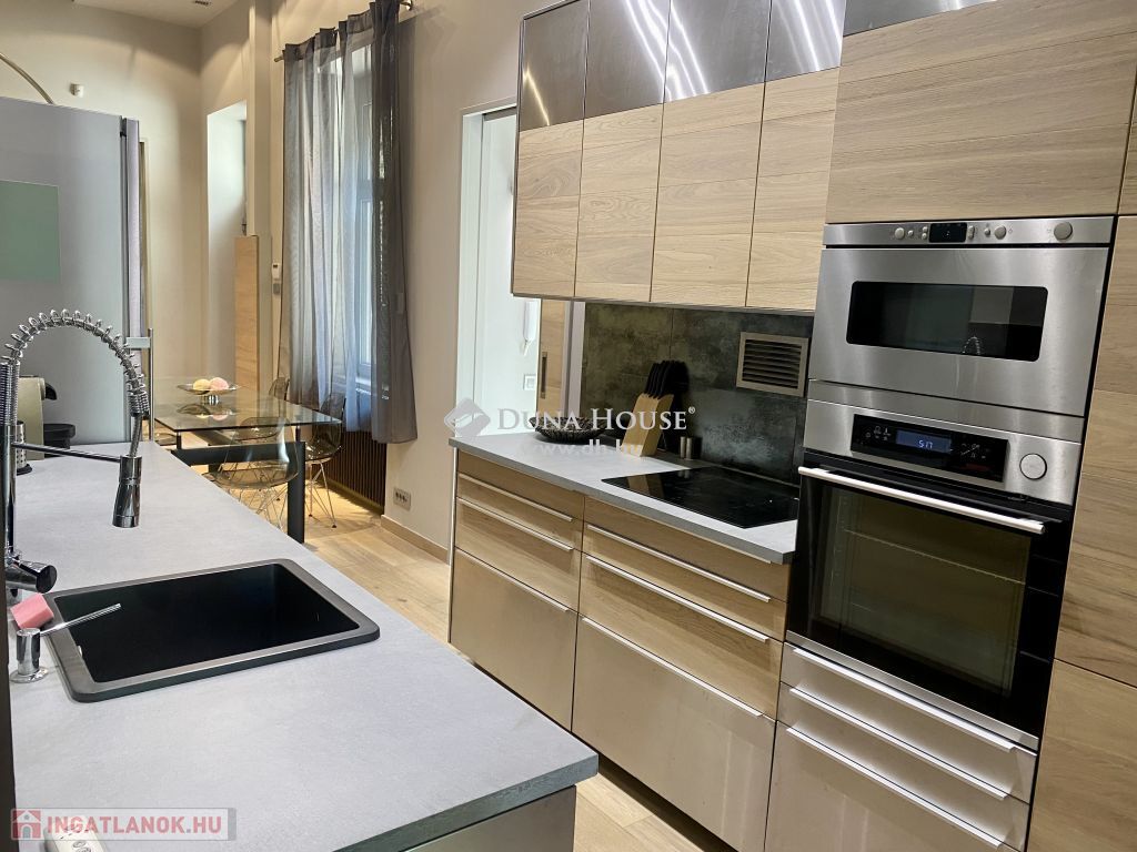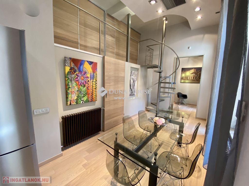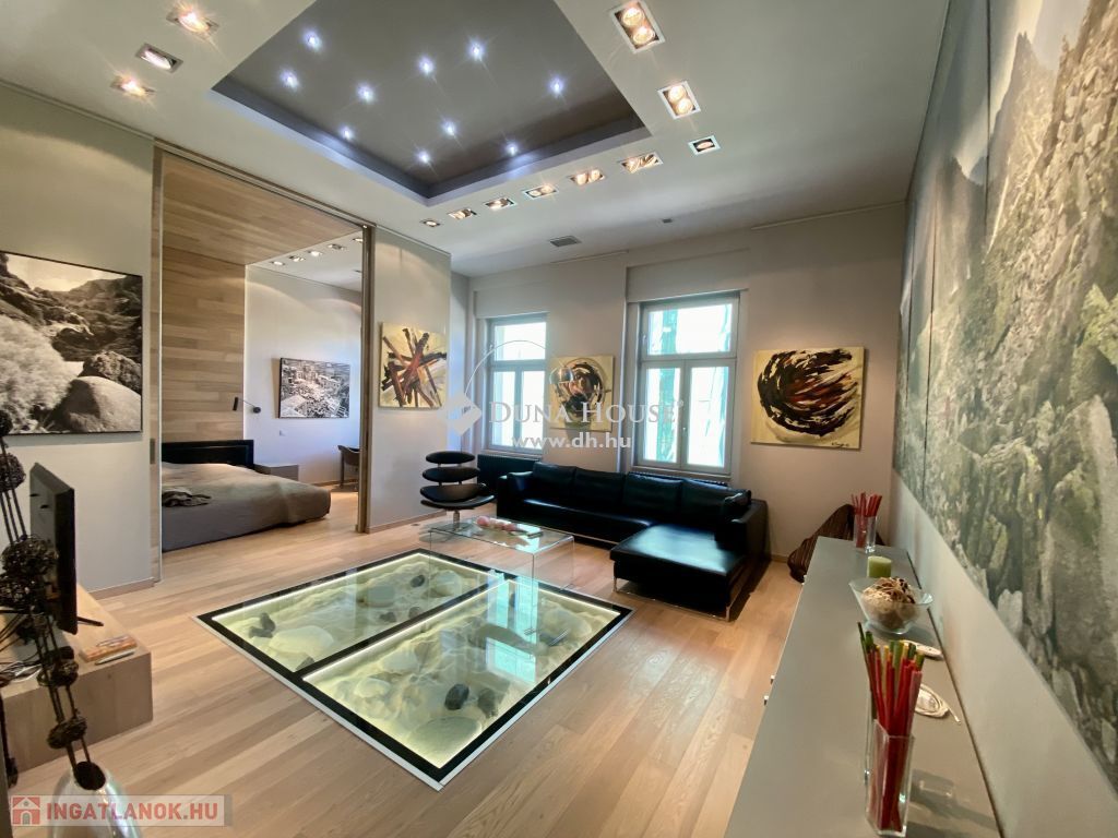 Magas minőségben és igényesen berendezett lakás Budapest szívében eladó.93 nm-es két hálószobával és két fürdőszobával rendelkező napfényes lakás teljesen bebútorozva kerül értékesítésre. Budapest szívében az 5. kerületben a József nádor téren található. A József nádor tér Budapest egyik legszebb részén helyezkedik el magasan infsastukurált boltok, közlekedés és intézmények tekintetében is.A lakásban két hálószoba található. A nagyobbik szoba a nappaliból és a fürdőszobából is megközelíthető tolóajtókon keresztül. A kisebbik szobában teljes értékű álló galéria található alatta beépített tárolóval. Megtalálható továbbá két fürdőszoba az egyik káddal és szaunával szerelve a másik zuhanyzóval. A nagyobbik fürdőszoba felett álló galéria található beépített szekrényekkel. A nappali napfényes és tágas ablakai a Hild térre néznek különlegessége a padlóba süllyesztett vitrin. A konyha gépesített és alig használt. Az ablakokon elektromos redőnyök vannak. A lakás riasztó rendszerrel szerelt, két bejárati ajtóval rendelkezik ezeken kívül minden ajtó tolóajtó.Amennyiben felkeltette az érdeklődését ezt a különleges lakás Budapest szívében keressen bizalommal.