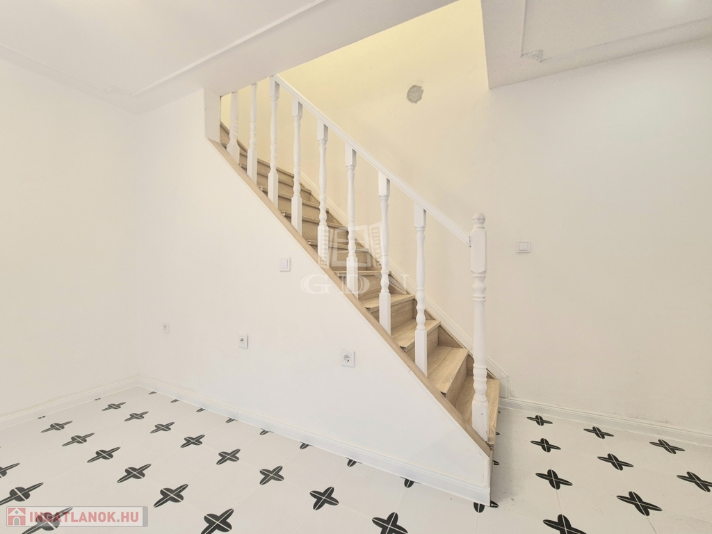V. kerületben, a Károlyi-kert közelében, jó állapotú, liftes társasház földszintjén, eladásra kínálok, egy udvari nézetű, a tulajdoni lapon 45 m2-es (a valóságban 90 m2) belső kétszintes, 3 szobás, dupla komfortos, műszakilag-esztétikailag felújított ( víz, villany vezetékek cseréjén átesett, műanyag nyílászárókkal, gépesített konyhabútorral szerelt) alacsony fenntartású téglalakást.