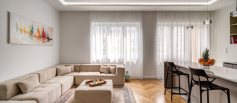 Located in one of Budapest’s most elegant streets, Falk Miksa Street, this fully renovated, 101 m² luxury apartment is offered for sale on the 4th floor of a classical, well-maintained building with elevator.