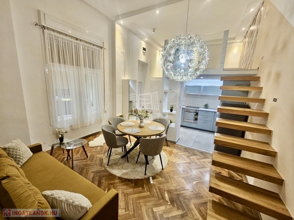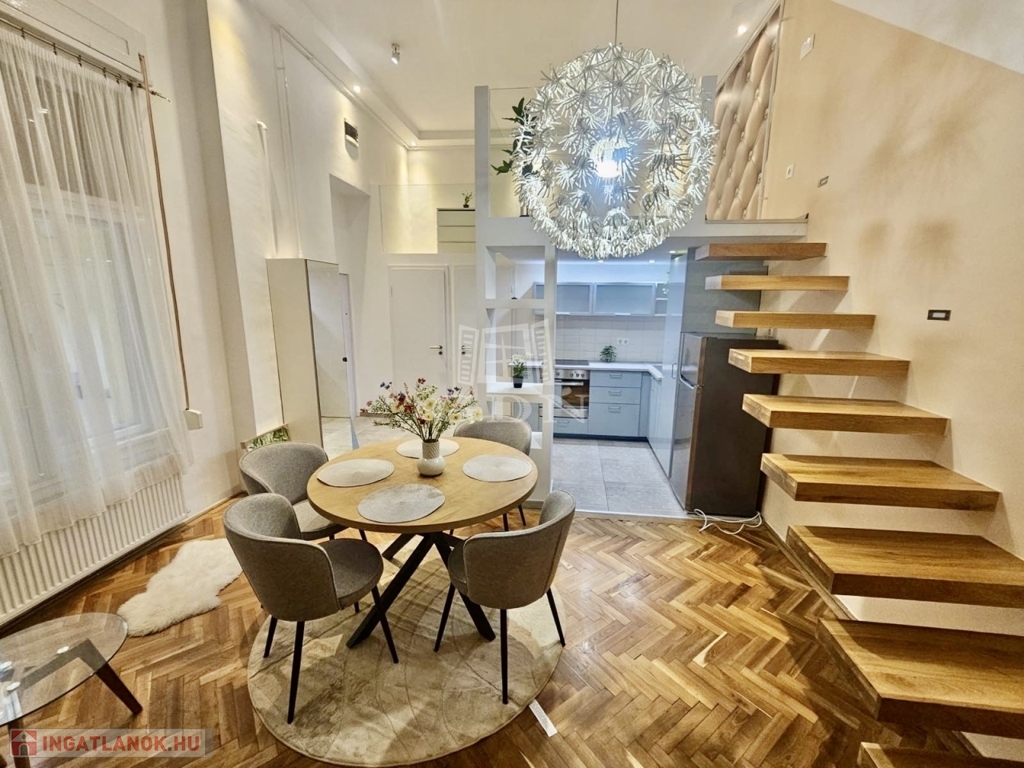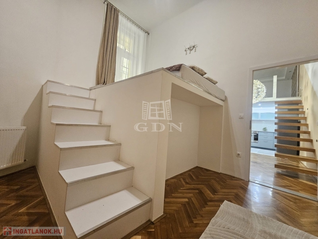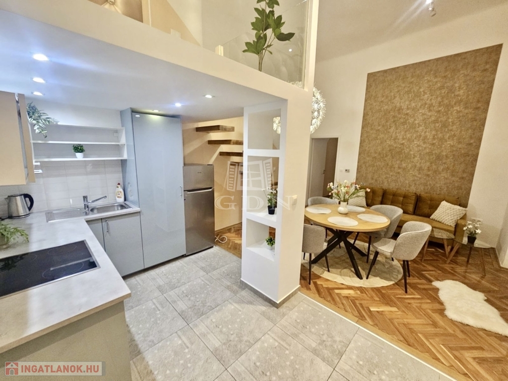 Eladó egy 48 m²-es, 2 szobás, felújított lakás az Arany János utcában, földszinti elhelyezkedéssel. Az ingatlan különlegessége a praktikusan kialakított dupla galéria, amely jelentősen megnöveli a lakás használható életterét.