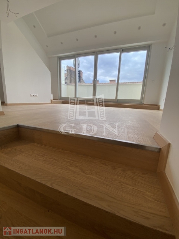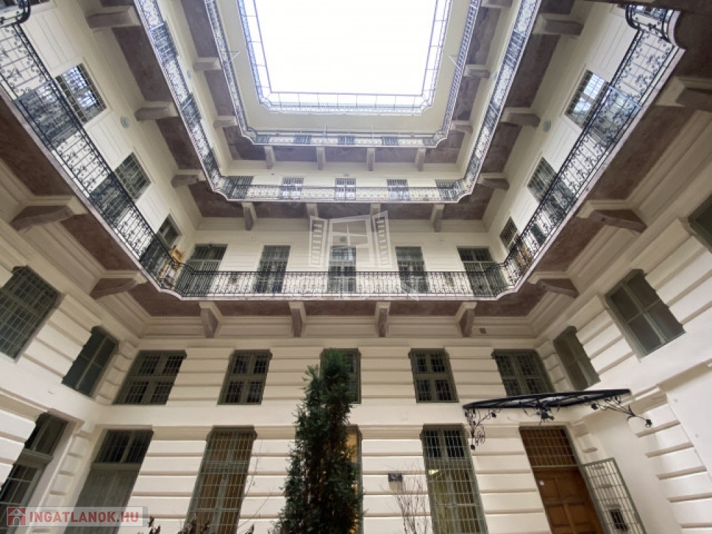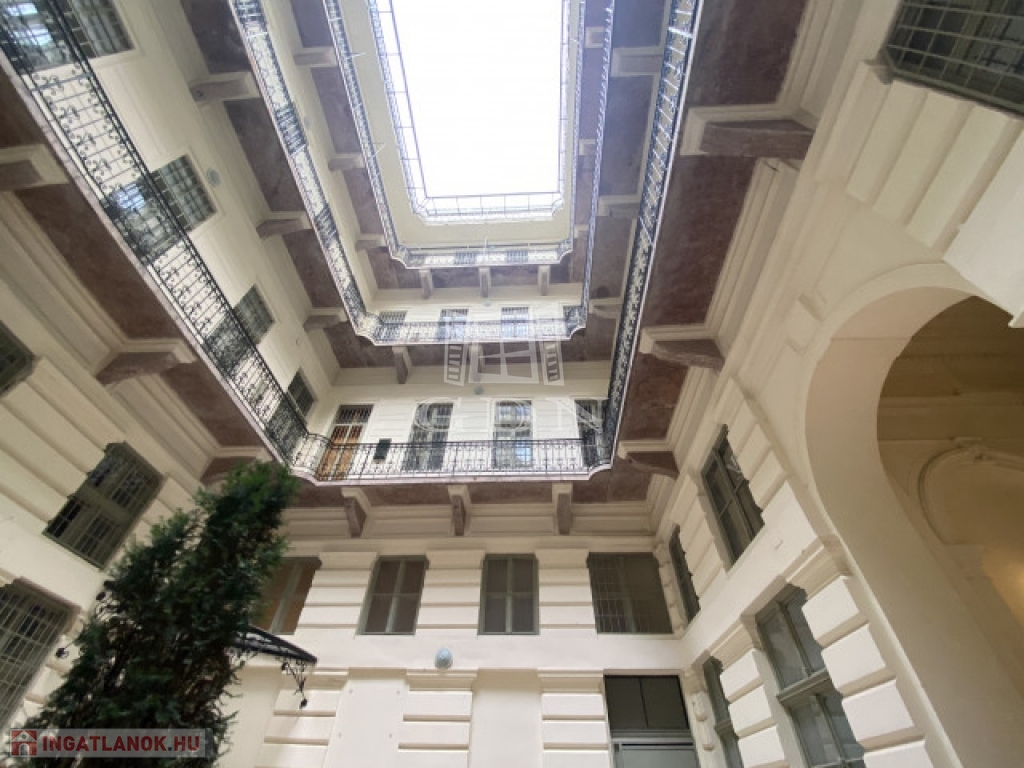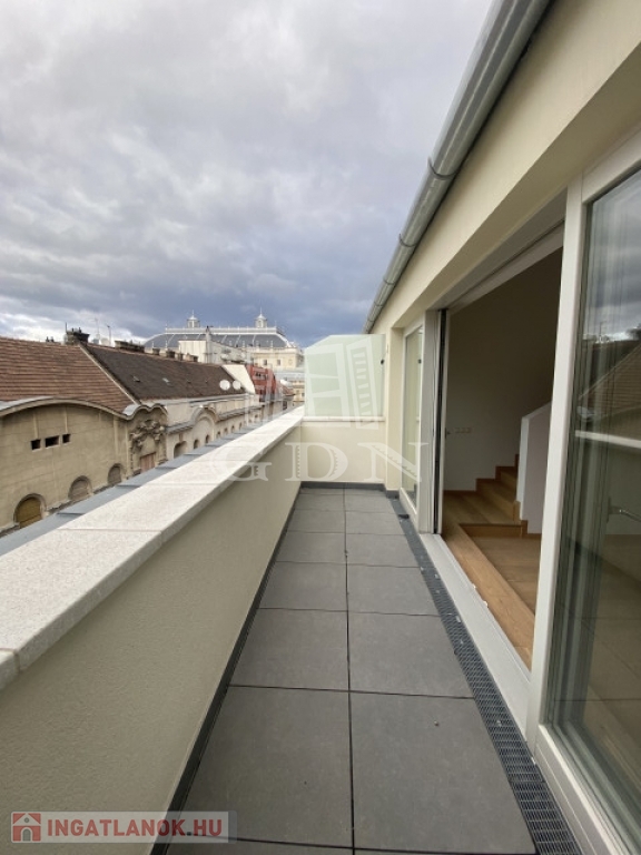 Budapest legszebb sugárútján, fényűző környezetben közvetlenül az Opera szomszédságában valósult meg ez a projekt ahol a háromemeletes neoreneszánsz bérház amely1880-ban épült Paulheim József tervei alapján, teljes körűen megújult. A III. emeleten az előző rendszer áldozatául esett és feldarabolt lakások összenyitásával új élhető tágas lakásokat alakítanak ki az elvárásoknak megfelelően, gyakorlatilag a 19. század értékeit és formáit megőrizve a 21. század műszaki elvárásaival ötvözve páratlan ingatlanokat élesztenek újjá. Míg a harmadik emeleten a monarchia fényűző pompája éled újjá párhuzamosan a tetőtérben modern teraszos duplex lakások kerülnek kialakításra, utcafronti teraszokkal, Pazar kilátással és a nappaliban 4,5m-es belmagassággal. Az épület felújításánál az elsődleges cél az eredeti állapot visszaállítása volt és az új lakók igényeinek 100% kiszolgálása. Itt a páratlan alkalom, hogy otthona egyben egy értékálló befektetés is legyen. Ideális elosztással rendelkező duplex lakás mely két hálószobával és két fürdőszobával rendelkezik. Mindkét hálószoba lehetőséget nyújt megfelelő méretű gardróbok beépítésére. A konyha külön helyiségben került kialakításra a nappali mellett. A nappaliból nyíló teraszról az Operára és a Bazilikára egyaránt rálátás nyílik. A nagy üvegfelületeknek köszönhetően kifejezetten világos. A lakást a a közel 50m2-es tetőterasza emeli ki igazán a belvárosi ingatlanok sorából.