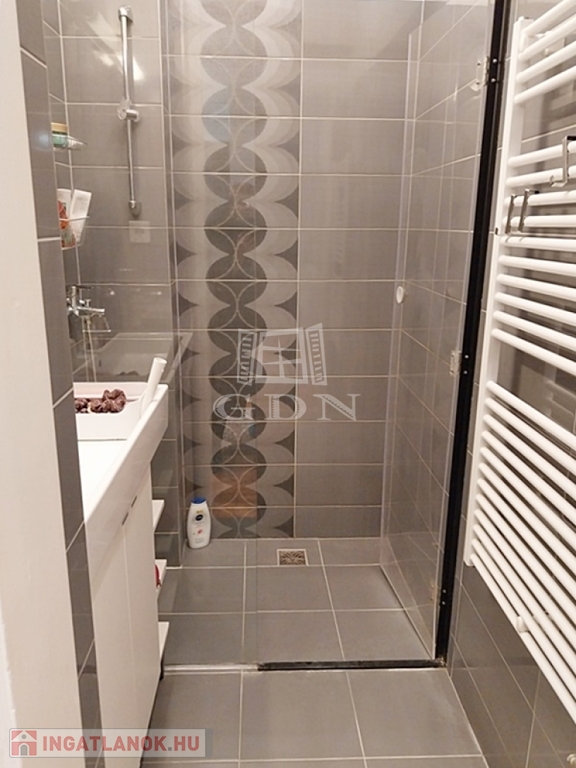 Belépve a tágas 7 nm-es előszobába érkezünk, jobb oldalon kapott helyet a külön nyíló 1.5 nm-es WC, mellette a 3 nm-es zuhanyzós fürdőszoba.