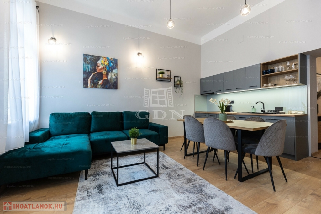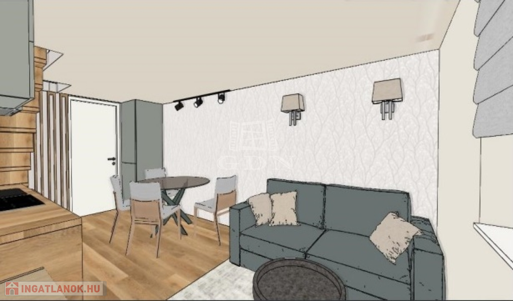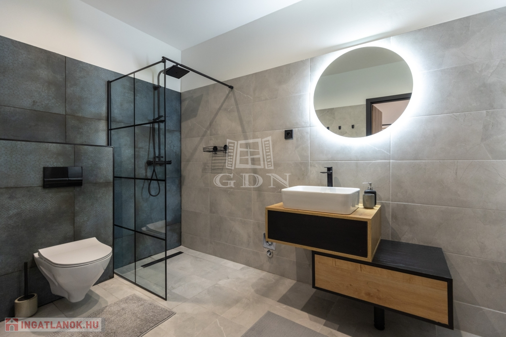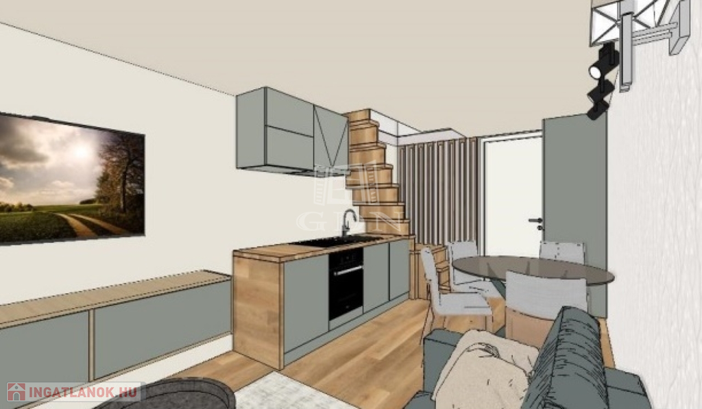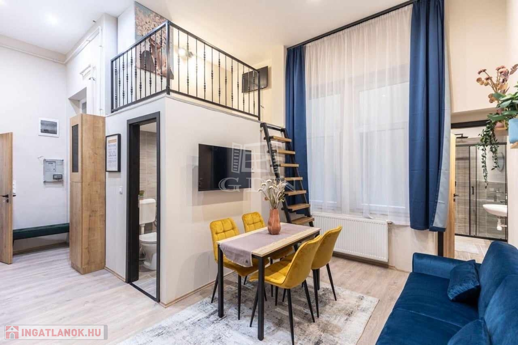 Eladó egy luxus kivitelezésű, 28m2-es belső kétszintes ingatlan (fsz. belmagassága: 210cm, emeleten: 192cm), mely modern megoldásokkal felszerelt, mint az elektromos padlófűtés és hűtő-fűtő klímák.
