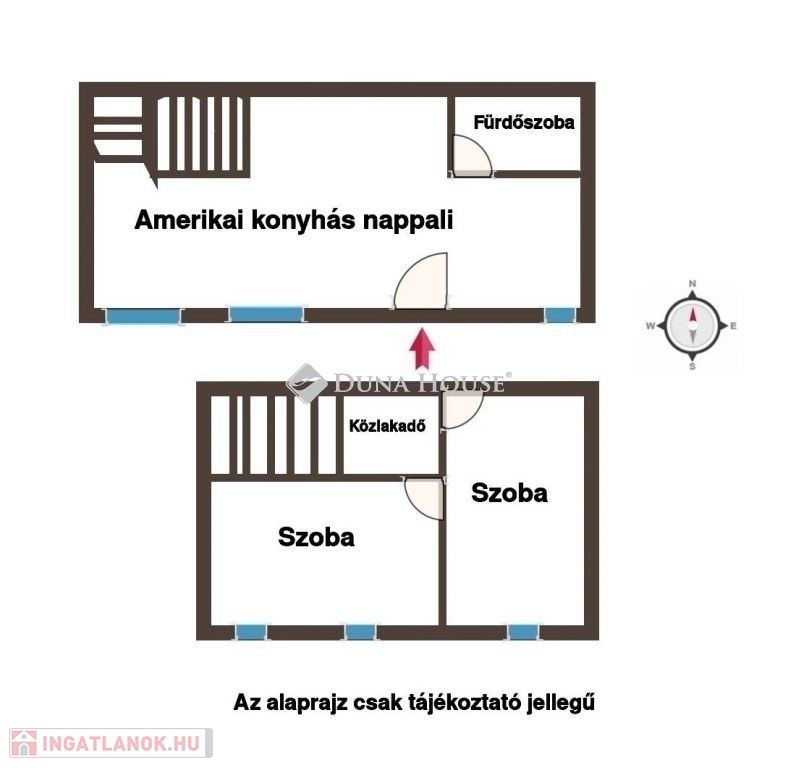 A rendezett ház földszinti, világos lakása csendes, de központi elhelyezkedésű. Modern, elektromos fűtésű, alacsony rezsijű: lent amerikai konyhás nappali és fürdő, fent két hálószoba található.