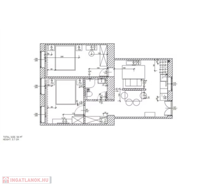 -Valódi alapterület: 58 m²